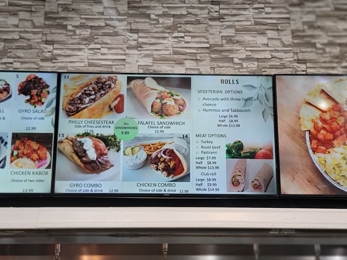 The menu at Feta Mediterranean Gourmet offers a variety of flavorful Mediterranean dishes with something for everyone. For those looking for a quick bite, there are delicious sandwiches like the Gyro Sandwich and Chicken Shawarma (a new addition), as well as the hearty Gourmet Cheesesteak Sandwich and Falafel Sandwich. If you're in the mood for a full meal, the Falafel Sandwich Meal, Gyro Meal, and Chicken Gyro Meal are great choices. For meat lovers, the Beef Kabob Meal and Chicken or Lamb Platter provide savory options, while the Whole Turkey Roll and Club Roll cater to those craving a tasty wrap. On the vegetarian side, the Vegan Falafel Sandwich and the Vegetarian Rolls (offered in half and whole sizes) offer satisfying plant-based choices. Don’t forget the sides like the refreshing Greek Salad, creamy Hummus, or the tangy Chickpeas Salad. For larger gatherings, the restaurant also offers party trays, including Lamb or Chicken Platters, Gourmet Rolls Platter, and Vegetarian Roll Party Trays in various sizes. As for desserts, treat yourself to a sweet finish with Baklava or the special Cheesecake Baklava available for Christmas. Extras such as Tzatziki Sauce and Pita Bread are also available to complement your meal.
